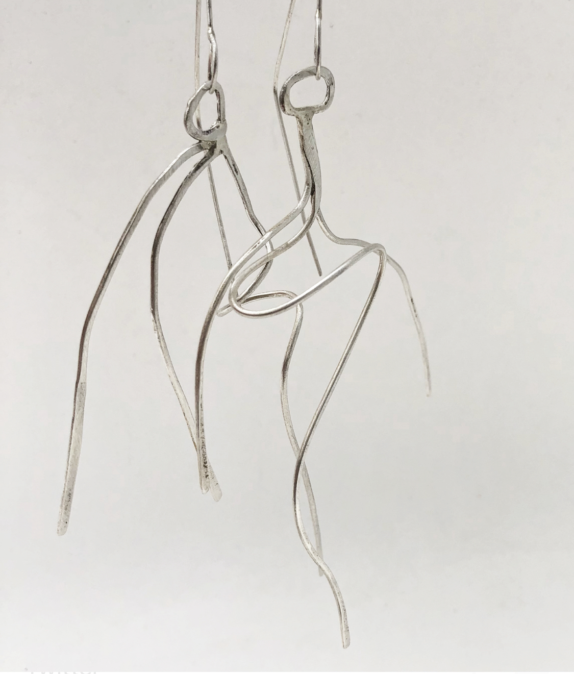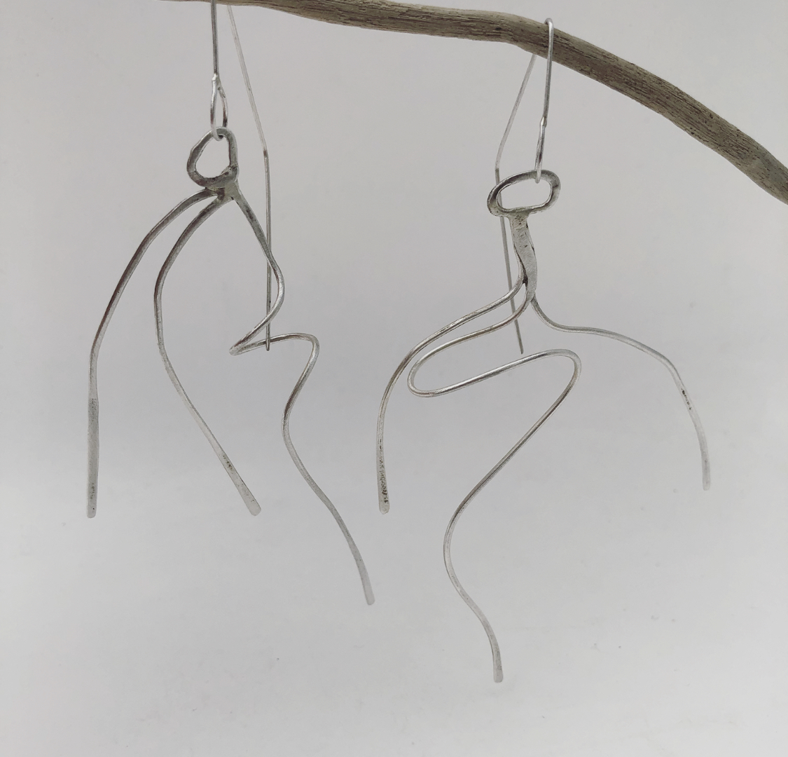 These looping and curling earrings are based on the tendrils of plants from the Oxford Botanical Gardens, they are made of sterling silver and are approx 10 cms long.