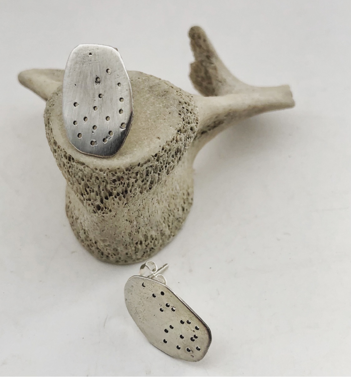 These recycled sterling silver earrings are inspired by the pebbles and rocks I find on the shorelines I wander. The treasures are the stones with the holes in! These earrings are approx 1.5cmx1cm and have sterling silver butterfly backs.