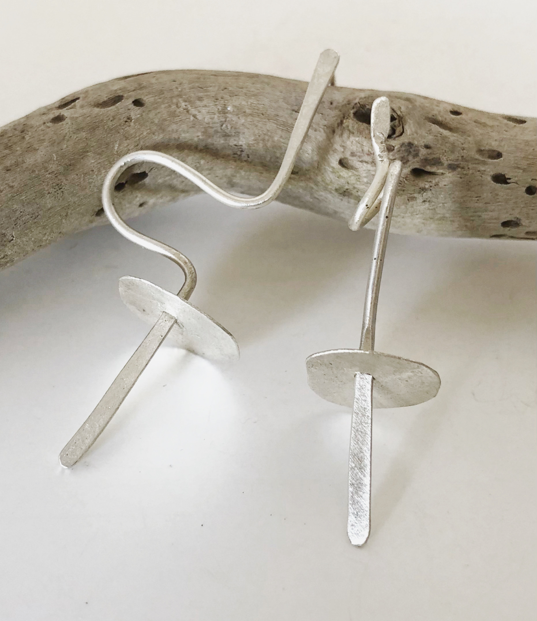 Unique hand drawn sterling silver shapes for your ears, raindrops falling into rockpools. These recycled silver earrings are approx 3cms in length.